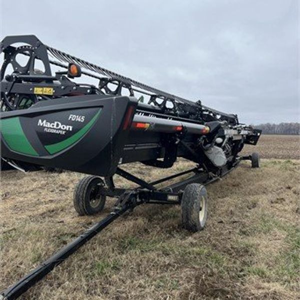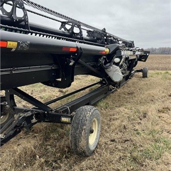 45’ Flex Draper. JD Hookup field ready Condition: Used Attachments- Poly Skid Shoes: Yes, Divider Rods: Yes, Combine Adapter: Yes Category Specific- Cutterbar type: Flex, Gathering type: Draper, Auto Contour: Yes, Auto Height Control: Yes, Auto Reel Speed Control: Yes,Reel Type: Flip Over, Split Reel: Yes, Fore/Aft Reel: Yes, Fore/Aft Reel Type: Hydraulic, Telescoping Drive: Yes, Hydraulic Hookup: Single Point, Knife Drive: Dual, Spare Knife: Yes, Full Finger Auger: Yes, Anti-Wrap Bundle: Yes, Stubble Lights: Yes, Warning Lights Work: Yes, Field Ready: Yes Weights & Dimensions- Cutting Width: 45ft