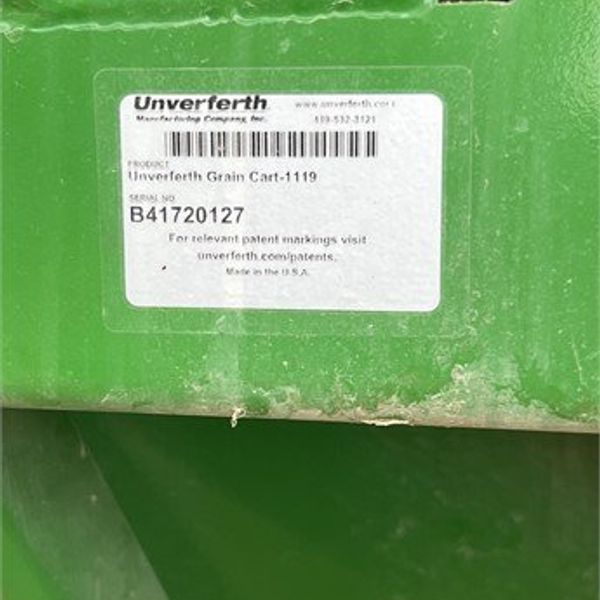 1119 unverferth cart has remote display for scales on side and u harvest scale system, roll tarp and 4way hyd spout. has very little use 650 bu/min unload and 7/16" flighting
