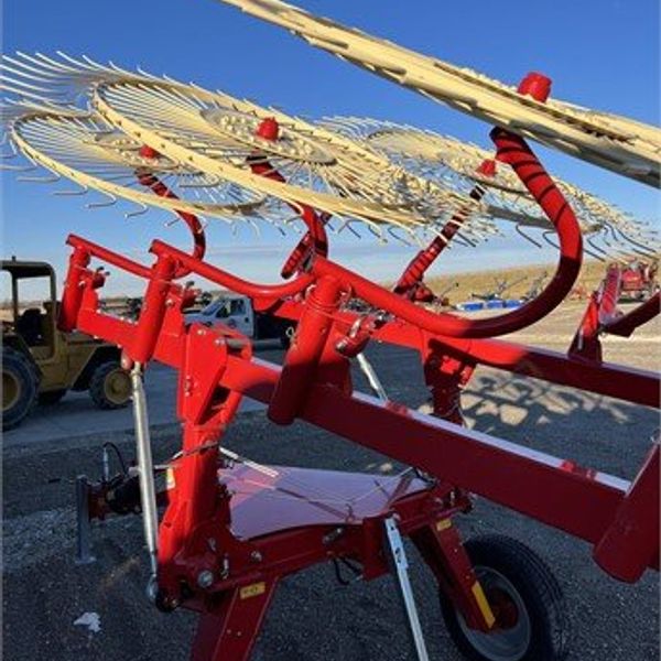 new farm king 8 wheel bat rake. with center kicker Condition: New Hitch: Pull-Type, Rake Type: Wheel, Number of Wheels: 8, Wheel Diameter: 55, Folding: Yes, Folding Type: Hydraulic Drive Type: Ground Driven Working Width: 18 ft, Weight: 1,573 lb