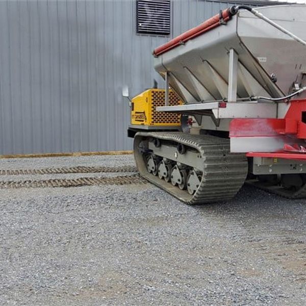 CHANDLER FTL 12 FERTILIZER SPREADER PAIRED WITH A TERRMAC RT9 CRAWLER FEATURING RUBBER TRACKS ALLOWING FOR LOW GROUND PRESURE BEING ABLE TO BROADCAST FERTLIZER UP TO 70'FT AND LIME UP TO 50'FT. AVAILABLE FOR RENT TODAY